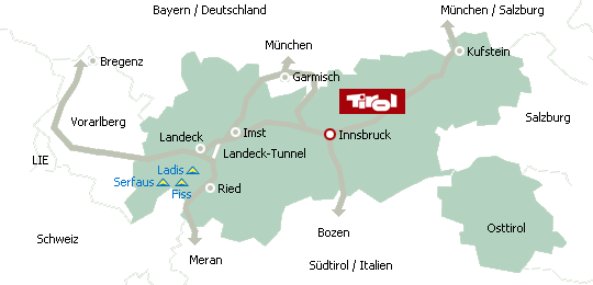 Mit Bahn/Bus oder mit Flughafentaxis nach Serfaus-Fiss-Ladis.