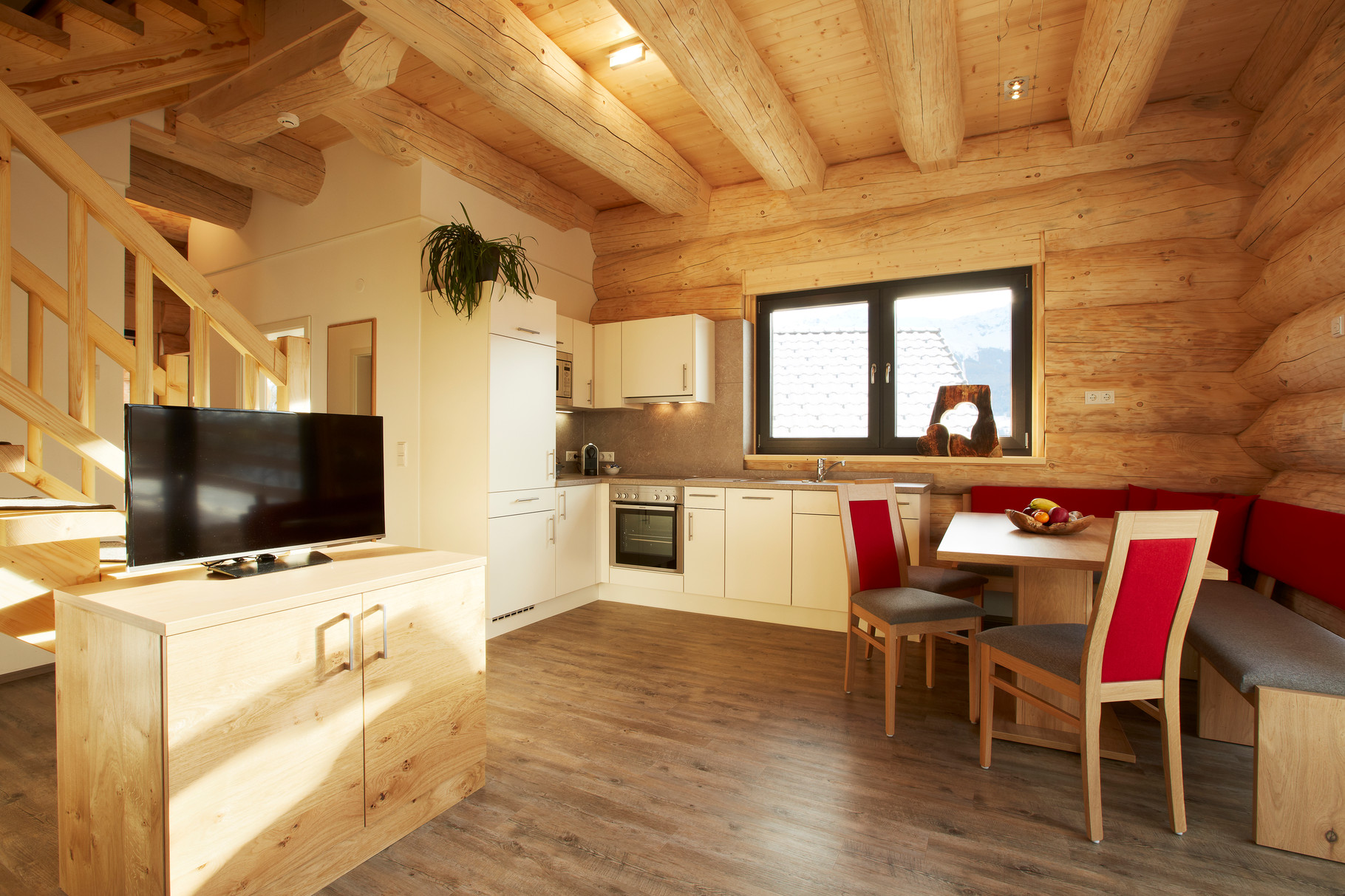 Solid natural logs store the warmth and provide an inviting indoor climate.